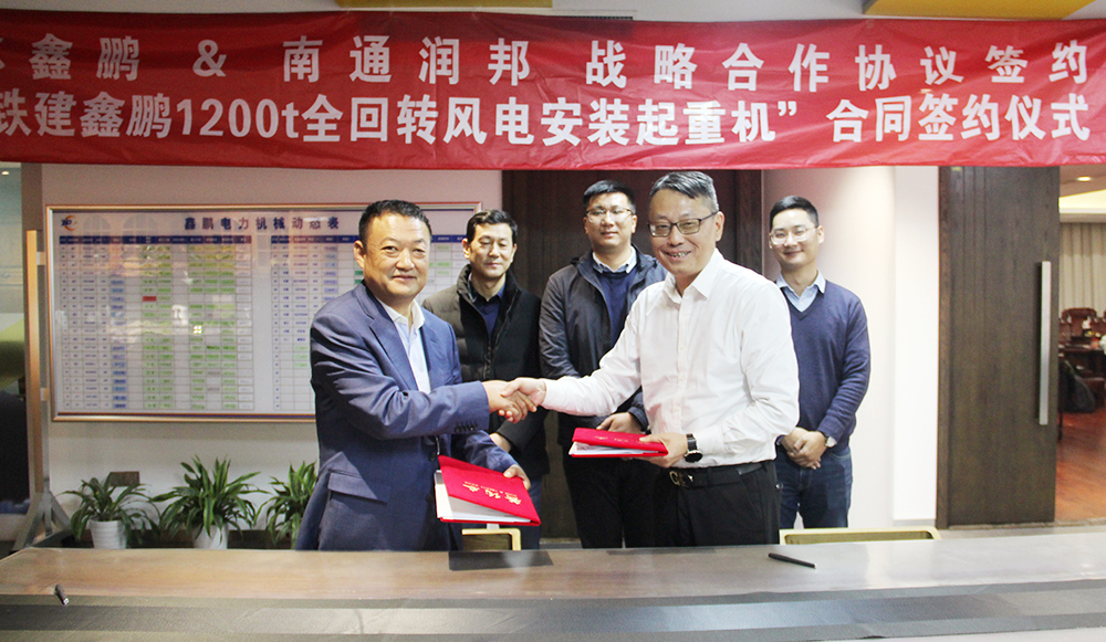 近日,潤邦重機(jī)與江蘇鑫鵬電力工程有限公司(簡稱:鑫鵬電力)正式簽訂了一臺GENMA 1200噸全回轉(zhuǎn)海洋起重機(jī)(簡稱:GENMA海洋起重機(jī))訂單合同,該訂單產(chǎn)品將用于海上風(fēng)電未來15兆瓦大功率風(fēng)機(jī)的吊裝作業(yè)。