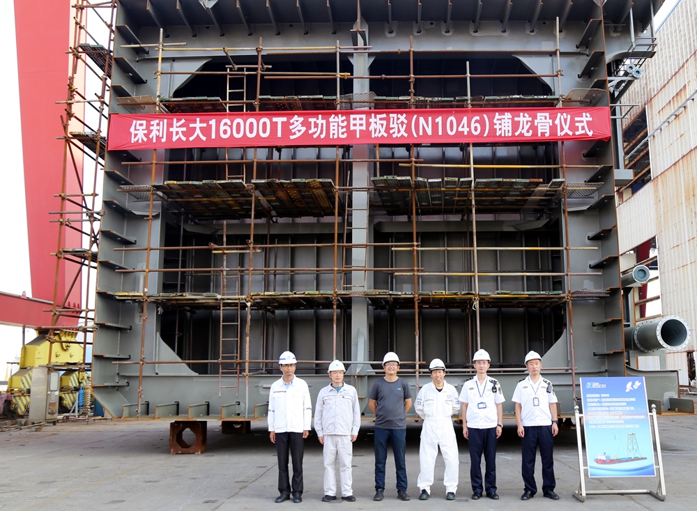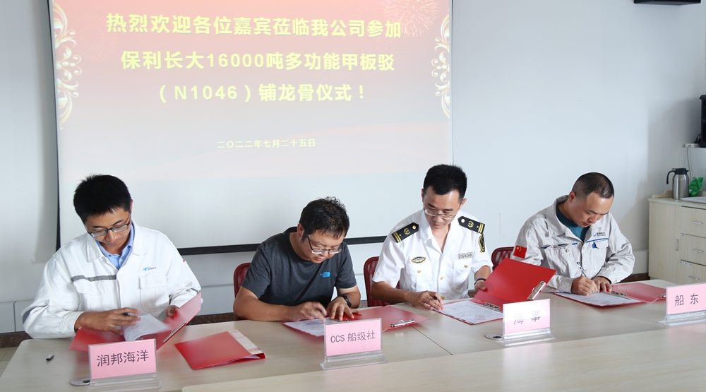 子公司潤(rùn)邦海洋承建的“保利長(zhǎng)大16,000噸多功能甲板駁項(xiàng)目”近日在潤(rùn)邦海洋船臺(tái)順利完成龍骨安放,船東代表、海事代表、CCS船級(jí)社及潤(rùn)邦海洋領(lǐng)導(dǎo)出席鋪龍骨儀式。