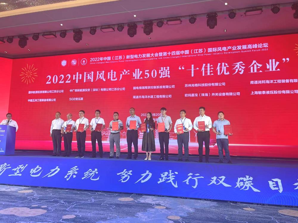 論壇會上,邵夕吾向江蘇省可再生能源行業(yè)協(xié)會的專家和其他公司的高層領(lǐng)導(dǎo)介紹了潤邦海洋的企業(yè)文化、產(chǎn)業(yè)規(guī)模以及戰(zhàn)略目標(biāo),憑借卓越的技術(shù)、高效的管理、優(yōu)質(zhì)的產(chǎn)品,潤邦海洋獲得了2022年中國風(fēng)電產(chǎn)業(yè)50強(qiáng)“十佳優(yōu)秀企業(yè)”的榮譽(yù)??偨?jīng)理邵夕吾榮獲2022年中國風(fēng)電產(chǎn)業(yè)50強(qiáng)“十佳先進(jìn)工作者”的稱號。