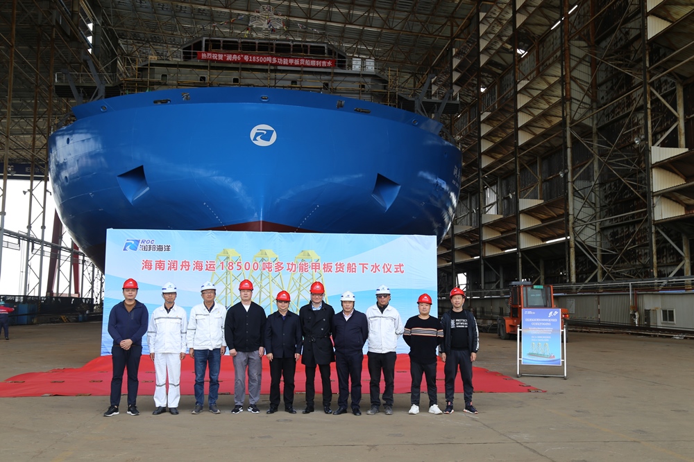 2022年10月28日13點08分,由子公司潤邦海洋承建的海南潤舟海運“18500噸多功能甲板貨船”吉水儀式在潤邦海洋隆重舉行。這是繼2022年9月25日保利長大16,000噸多功能甲板駁“長大海平”順利吉水之后的又一重要節(jié)點。潤邦海洋展現了一路向前、從未止步的風范。