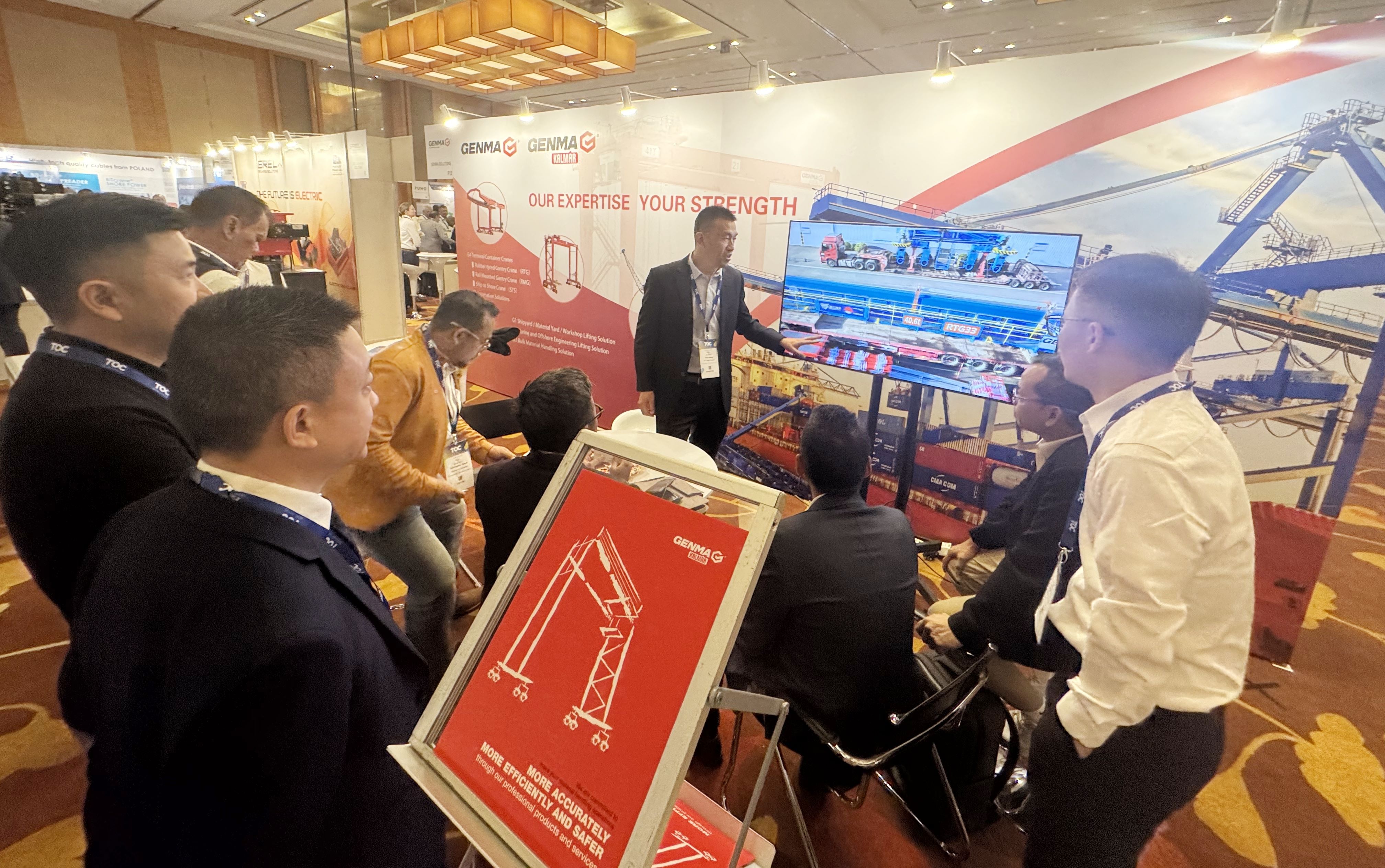 本次展會聚焦于智能化、自動化和可持續(xù)發(fā)展等前沿話題。與會代表們分享了對于行業(yè)未來發(fā)展的洞察,包括數(shù)字化、自動化、智能化在港口起重機領域的應用前景。展會期間,GENMA展位前人潮涌動,觀眾如織,眾多業(yè)內(nèi)人士和參觀者紛紛駐足,對我們展示的產(chǎn)品表現(xiàn)出濃厚的興趣。團隊成員與來訪者進行了深入的交流,詳細介紹了產(chǎn)品的技術迭代情況,并針對客戶碼頭原有設備的自動化、綠色環(huán)保改造需求提供了專業(yè)建議和詳細規(guī)劃。