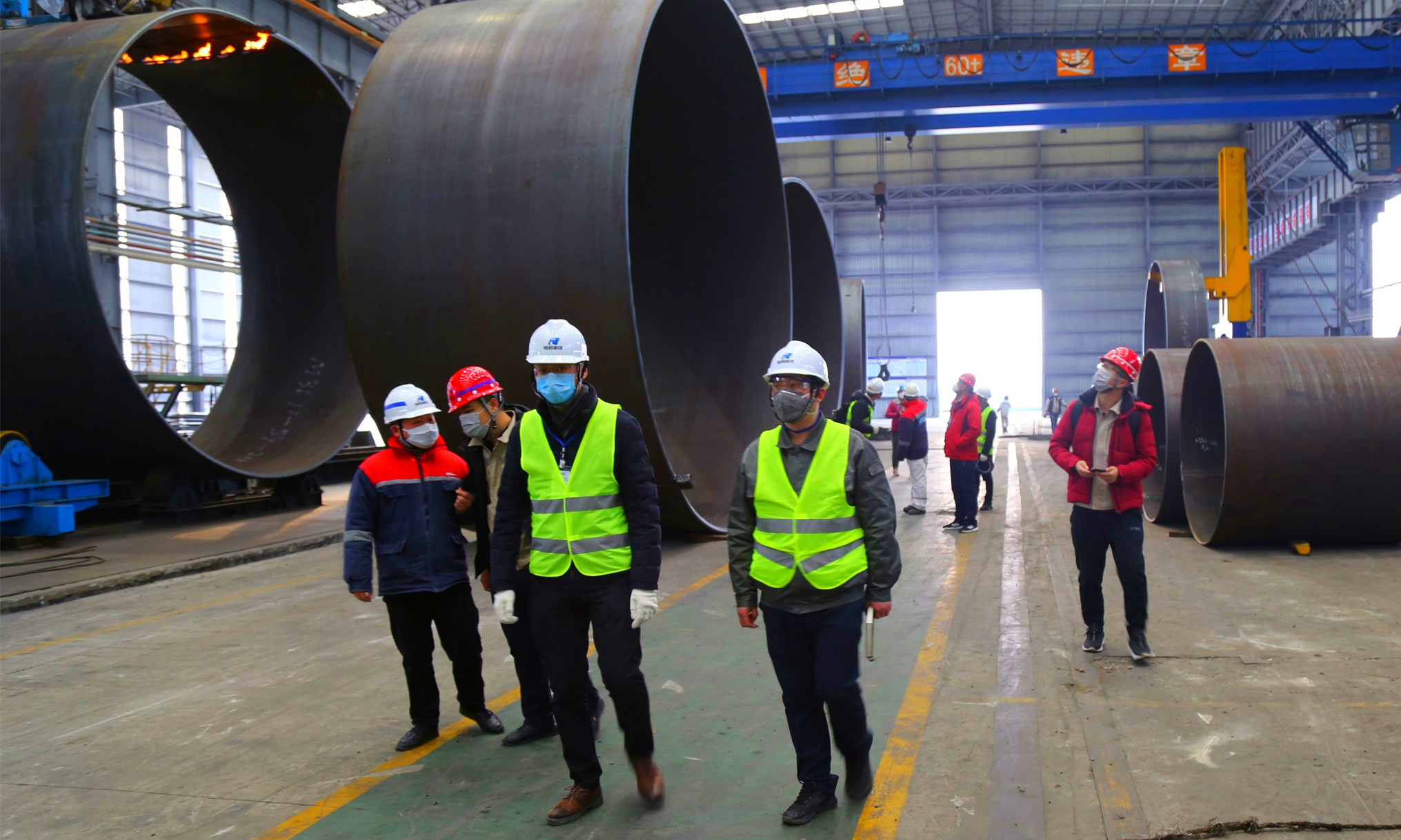 中國華能集團(tuán)有限公司江蘇分公司領(lǐng)導(dǎo)陸界屹先生、華東勘測設(shè)計研究院有限公司水利與新能源事業(yè)部總經(jīng)理陳大江先生、中交一航局啟東項目部副經(jīng)理李春雷先生等一行赴潤邦海洋實地調(diào)研潤邦海洋復(fù)工復(fù)產(chǎn)情況,共同協(xié)商對策以加快推進(jìn)啟東風(fēng)場項目進(jìn)展。