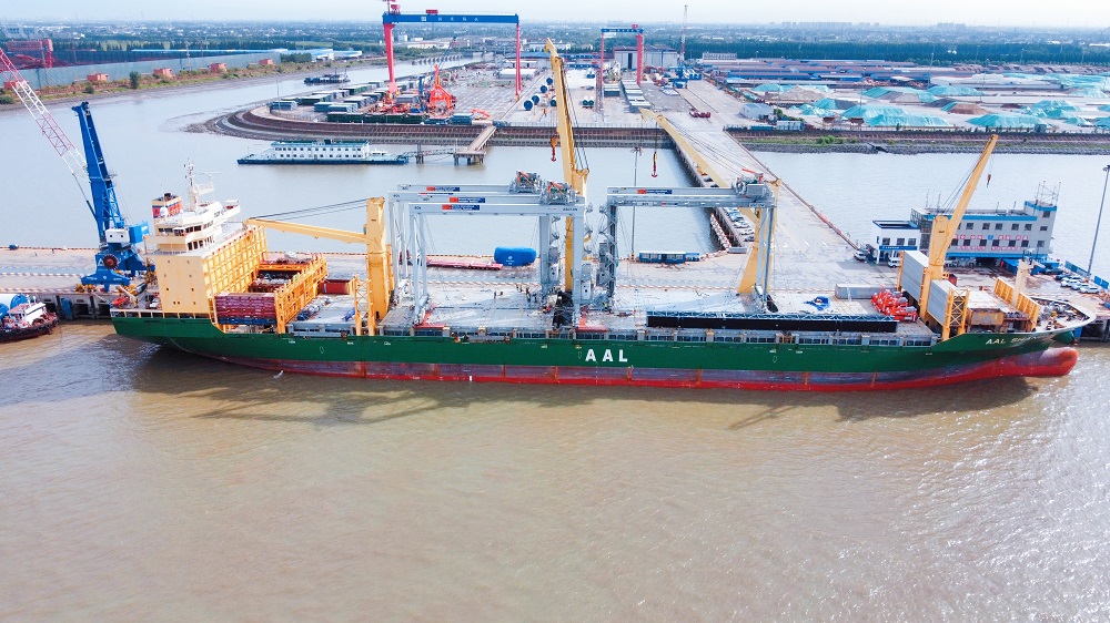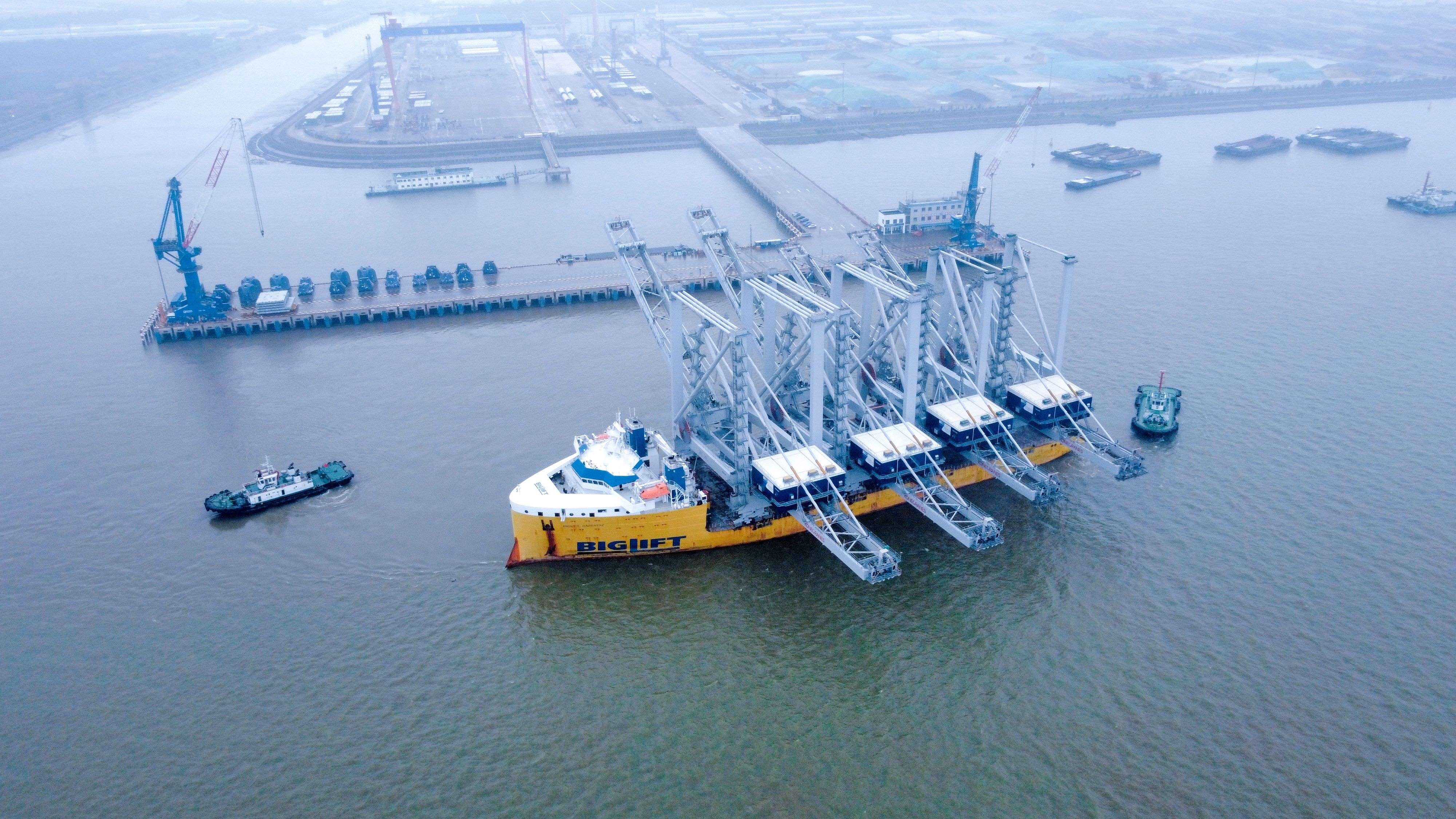 近日,裝載著4臺(tái)大型集裝箱橋吊(STS)的“巴倫支?!陛啺踩傠x潤(rùn)禾碼頭,遠(yuǎn)赴大洋彼岸的美國(guó)薩凡納港。