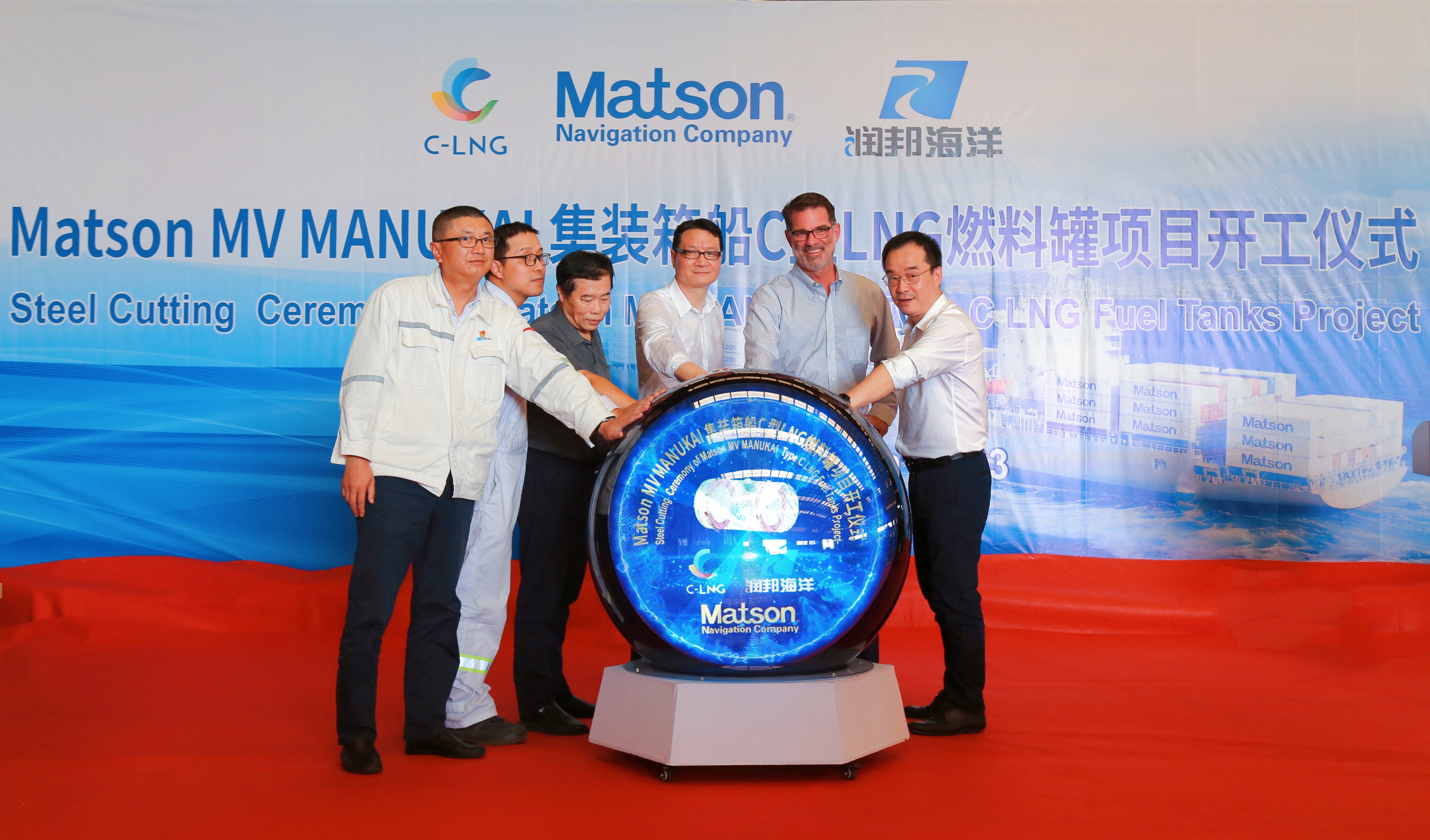 近日,子公司潤(rùn)邦海洋承接國(guó)外客戶的不銹鋼LNG燃料罐的開工儀式在潤(rùn)邦海洋的下料車間隆重舉行。Matson集團(tuán) Gartz先生,ABS驗(yàn)船師蔣鵬先生,C-LNG總經(jīng)理解利來(lái)先生,潤(rùn)邦股份總裁吳建先生等相關(guān)領(lǐng)導(dǎo)出席儀式,共同見證這一重要時(shí)刻。