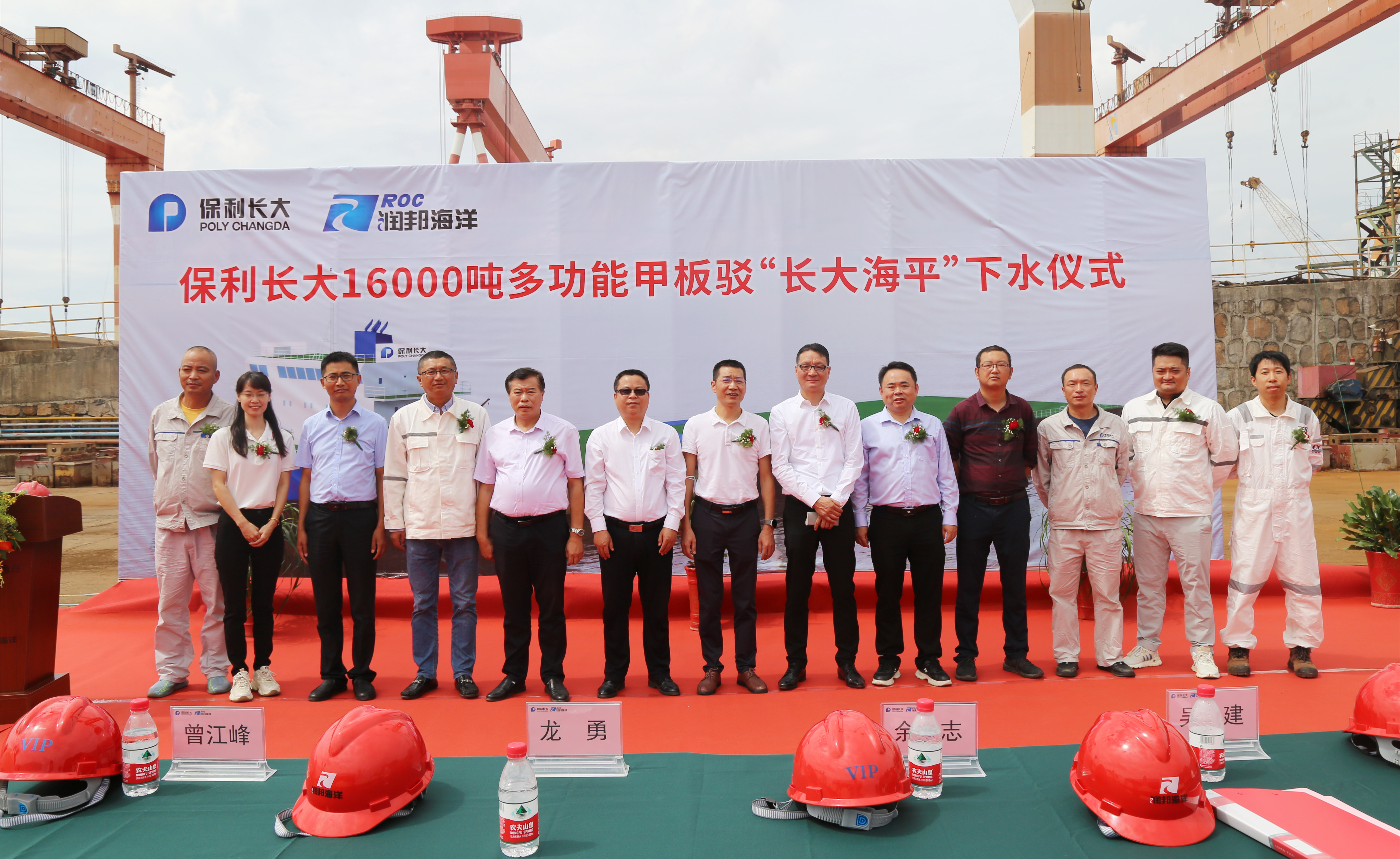 2022年9月25日11點(diǎn)38分,由潤邦海洋承建的保利長大16000噸多功能甲板駁“長大海平”吉水儀式在潤邦海洋隆重舉行。