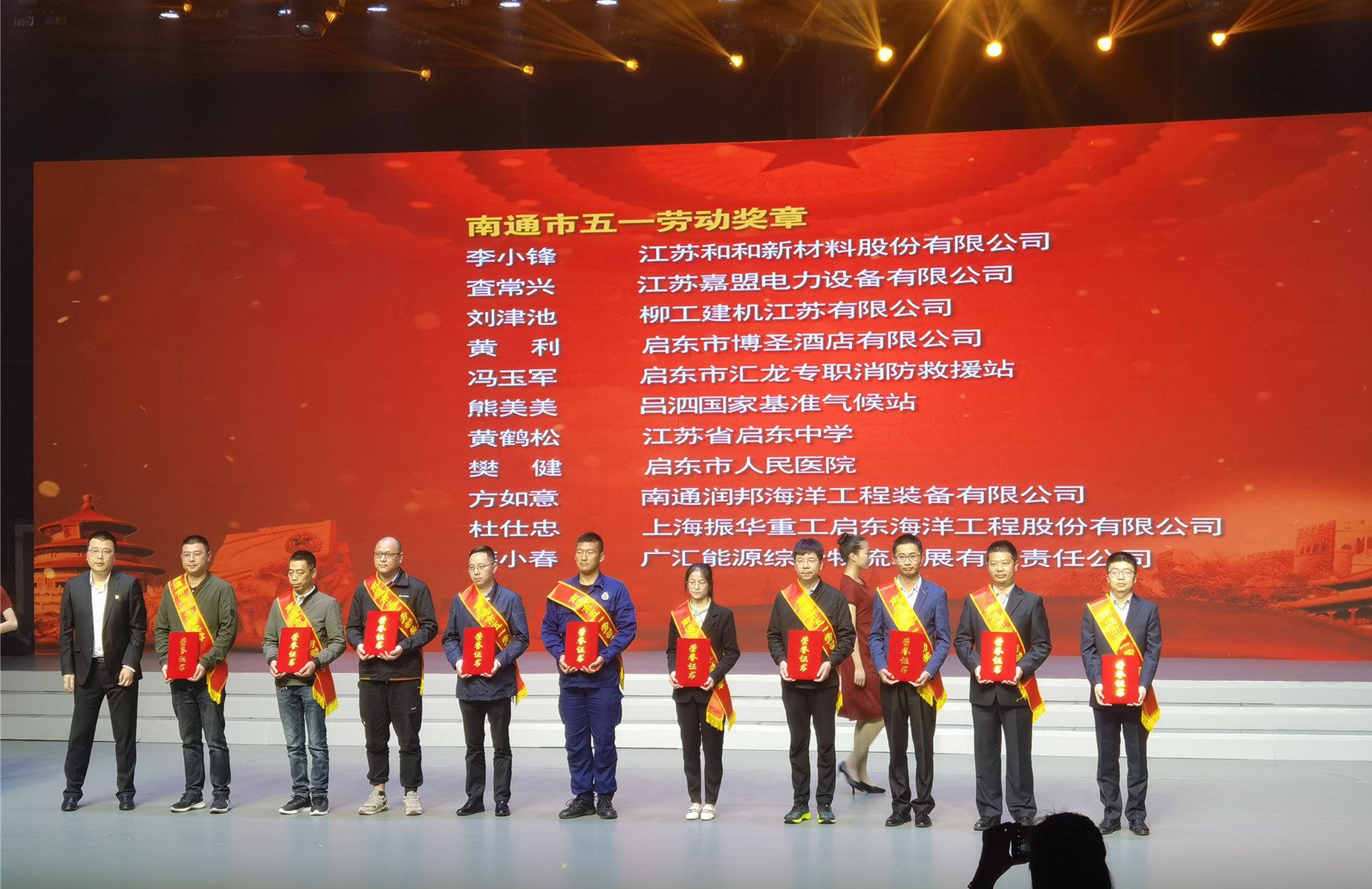 近日,由啟東市委組織部、市總工會舉辦的“百年心向黨·建功新征程”全市“五一”表彰大會在啟東融媒體中心演播大廳隆重舉行。潤邦海洋副總經(jīng)理方如意榮獲“南通市五一勞動獎章”,生產(chǎn)部起重發(fā)運組榮獲“啟東市工人先鋒號”稱號,營銷總...