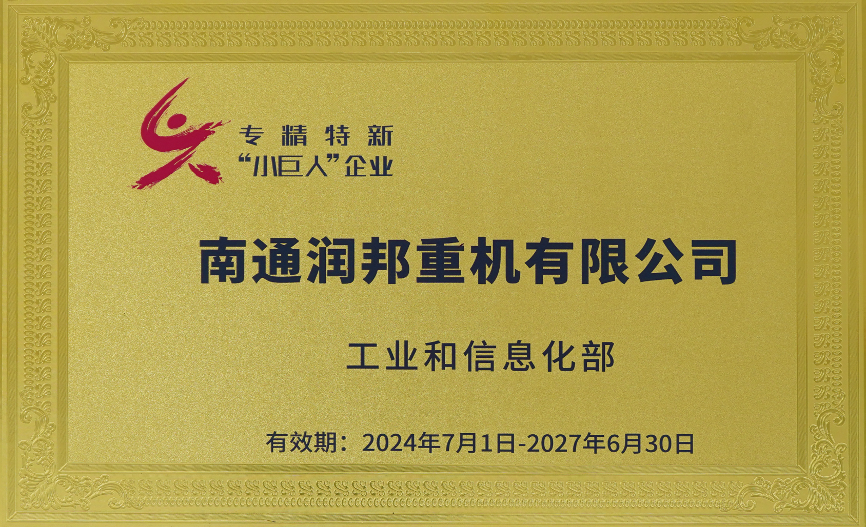 去年9月,在國(guó)家工業(yè)和信息化部組織開展的第六批專精特新“小巨人”企業(yè)培育認(rèn)定和審核工作中,子公司潤(rùn)邦重機(jī)成功通過審核獲評(píng)國(guó)家級(jí)專精特新“小巨人”企業(yè)。近日,潤(rùn)邦重機(jī)收到了專精特新“小巨人”企業(yè)稱號(hào)的證書。