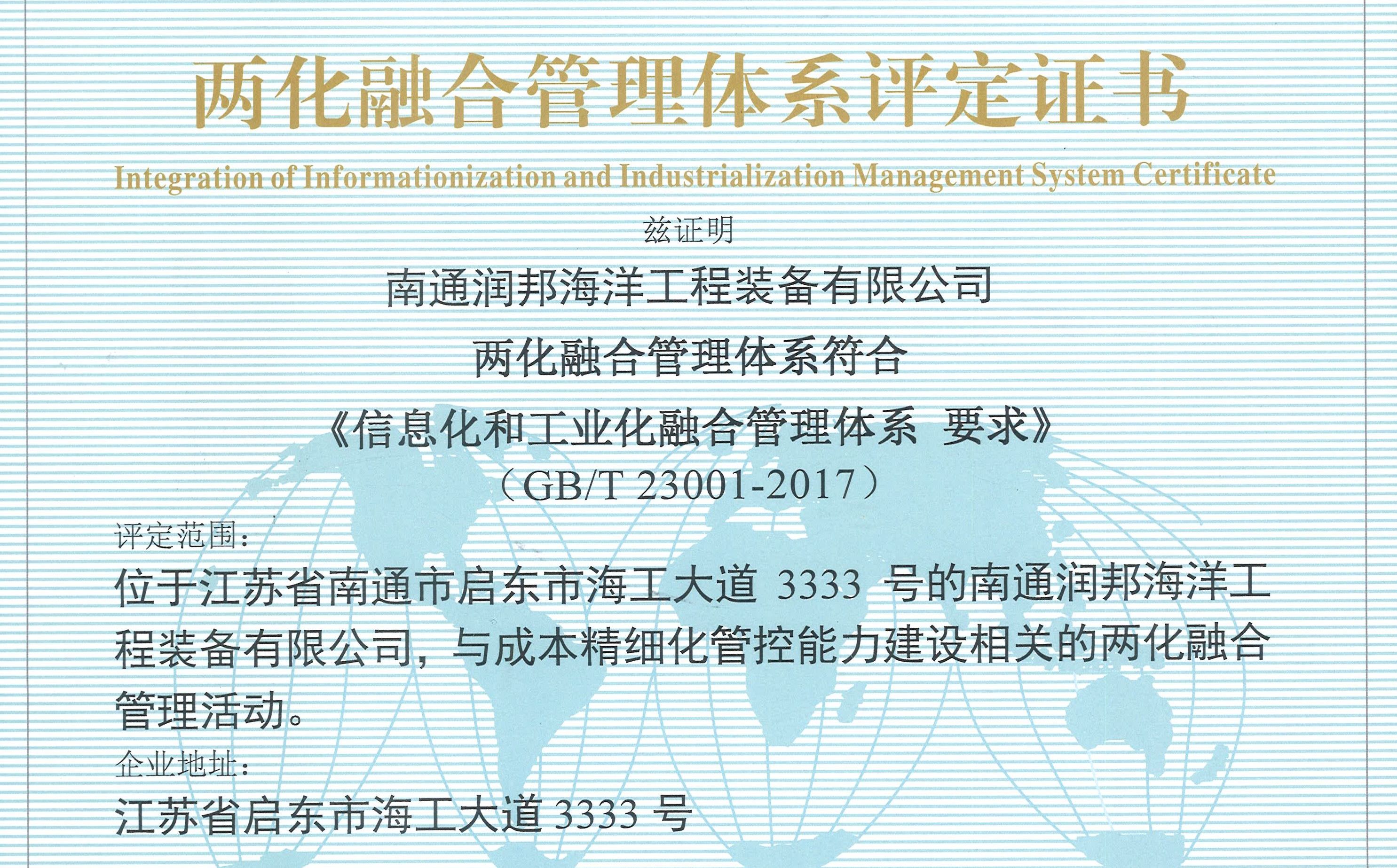 近日,經(jīng)國(guó)家工信部授權(quán)認(rèn)證機(jī)構(gòu)北京國(guó)金衡信認(rèn)證有限公司評(píng)估審核,潤(rùn)邦海洋順利通過(guò)了兩化融合管理體系認(rèn)定。
