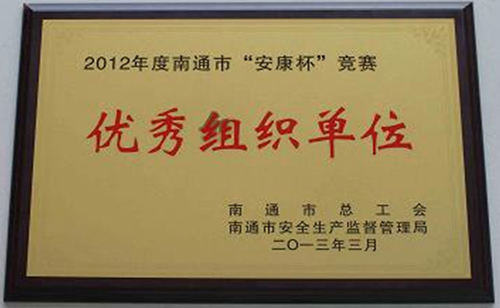 近日,公司獲得了由南通市總工會(huì)和南通市安全生產(chǎn)監(jiān)督管理局聯(lián)合授予的“2012年度南通市‘安康杯’競(jìng)賽優(yōu)秀組織單位”稱號(hào)。