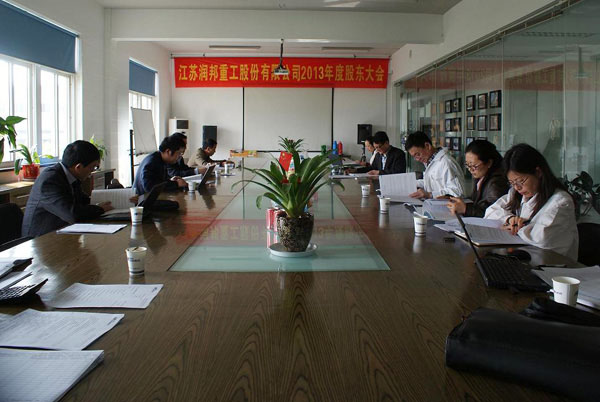 2014年4月18日,江蘇潤(rùn)邦重工股份有限公司召開(kāi)了2013年度股東大會(huì),會(huì)議由公司董事長(zhǎng)吳建先生主持。