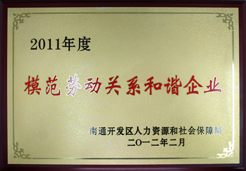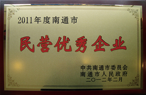 近日,公司被中共南通市委員、南通市人民政府評為“2011年度南通市民營優(yōu)秀企業(yè)”。公司將繼續(xù)加快發(fā)展,做大做強,為南通地方經(jīng)濟貢獻自己一份力量。