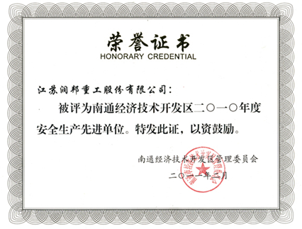 近日,潤邦股份被評為南通經(jīng)濟技術(shù)開發(fā)區(qū)2010年度安全生產(chǎn)先進單位。同時,公司安全環(huán)境部部長宋鋒同志榮獲南通經(jīng)濟技術(shù)開發(fā)區(qū)2010年度安全生產(chǎn)先進個人稱號。