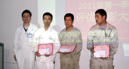 4月15日,公司培訓(xùn)樓三樓,潤邦股份舉行了2011年第一季度評優(yōu)表彰大會。大會由人力資源科肖爭主持。安全環(huán)境部部長宋鋒首先作了第一季度安全報告,并為安全標兵及先進班組頒獎。