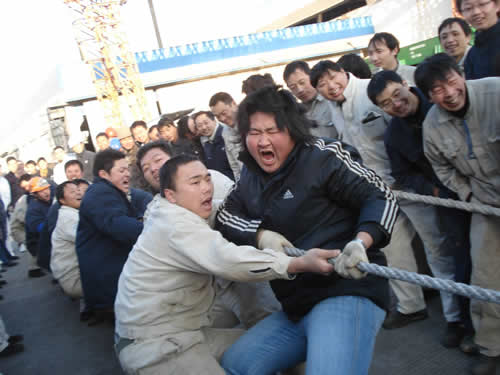 2008年12月31日15時,RHI在公司南門空地舉行了公司慶元旦傳統(tǒng)比賽項目——拔河比賽,比賽一共有12支代表隊參加,其中包括一支女子參賽隊,孫建成總經(jīng)理擔任本次比賽的裁判長。