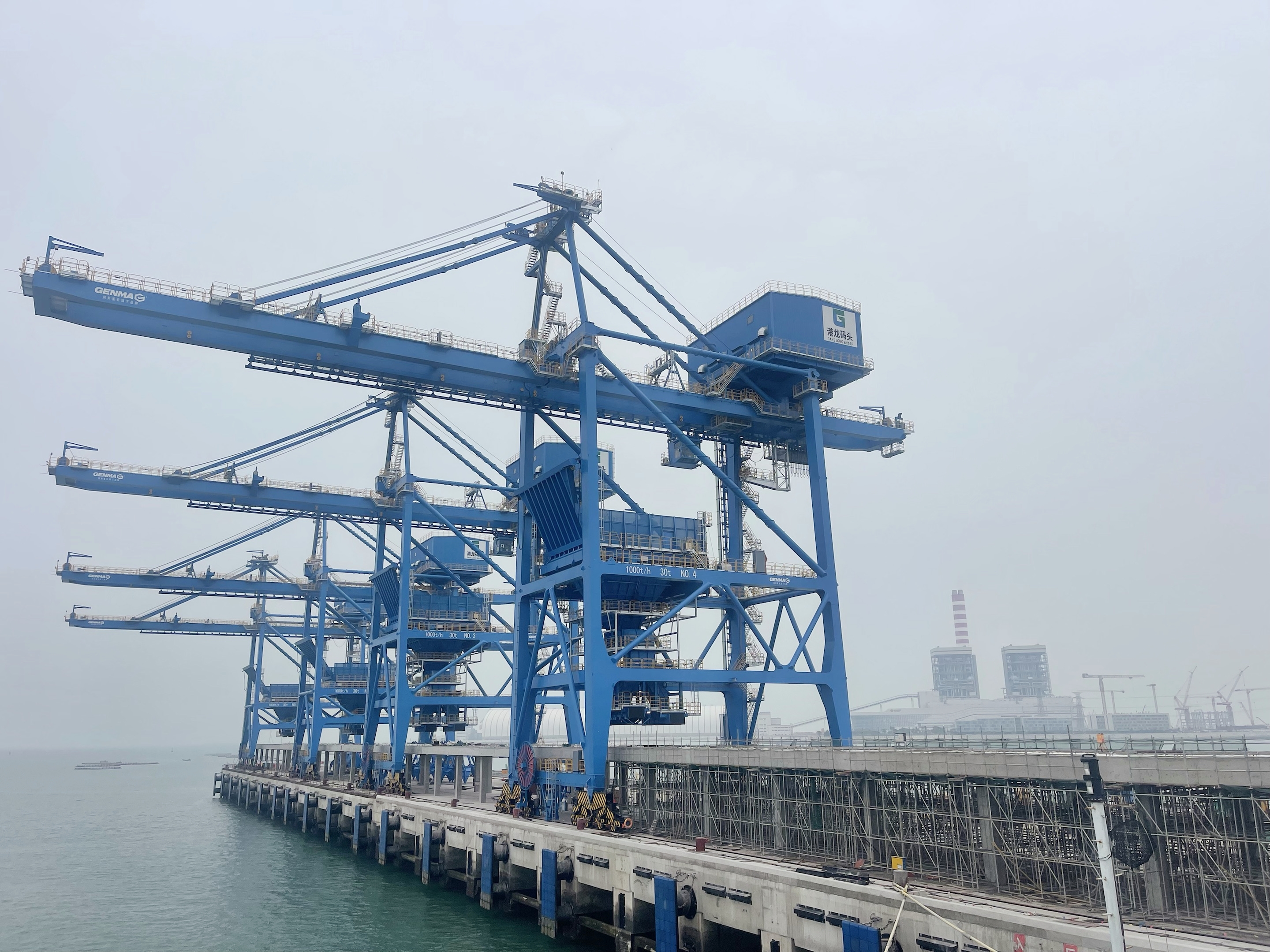 近日,子公司潤邦重機(jī)為造紙行業(yè)客戶再次提供的四臺(tái)GENMA橋式抓斗卸船機(jī)已順利落軌客戶碼頭。
