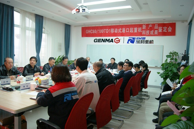 日前,潤邦重機舉辦了“杰馬”品牌“GHC60/100TD1移動式港口起重機”新產品和科技成果鑒定會。