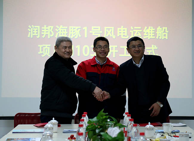 近日,來自國內近20家海洋風電行業(yè)知名企業(yè)的高層領導、CCS船級社代表、潤邦股份高層領導齊聚南通潤邦海洋工程裝備有限公司,共同見證 “潤邦海豚1號”風電運維船開工儀式。
