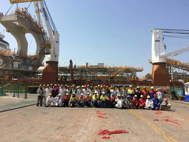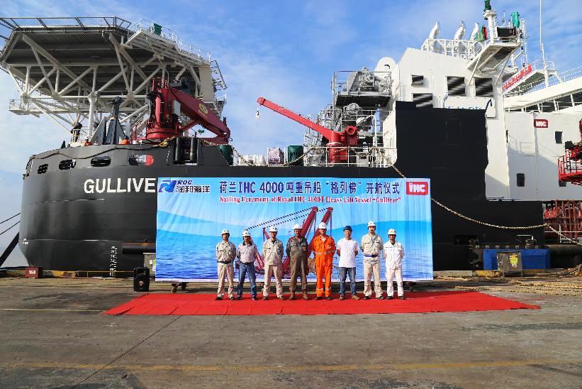 子公司潤邦海洋為荷蘭Royal IHC建造的4000噸自航重吊船順利舉行開航儀式。NORMALUX船東、Royal IHC代表及公司高層出席了開航儀式。